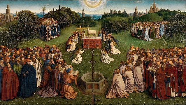 Above: Hubert and Jan van Eyck’s, Adoration of the Mystic Lamb, 1426–32, a representation of the sacrificial offering.