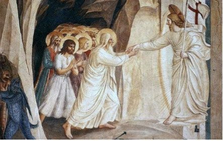 Above: Fra Angelico’s 14th Century painting of the Harrowing of Hell (Hades). Having defeated Satan, Christ, traditionally carrying a banner of the cross, frees the virtuous souls imprisoned in Hades.